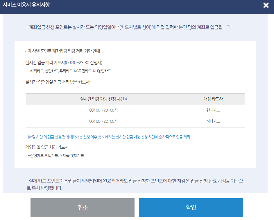 1. 여신금융협회 홈페이지 > 주요 서비스 > 카드 포인트 통합 조회 & 계좌 입금